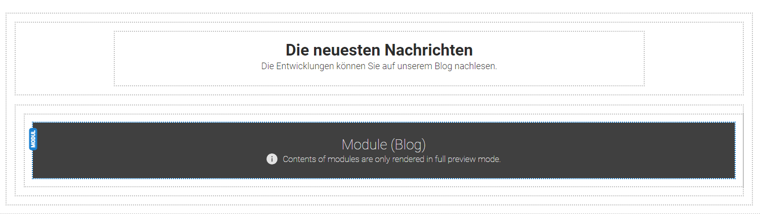 Nach der Installation fügen wir das Blog-Modul auf der vereinbarten Seite Ihrer Website hinzu und platzieren es an einer geeigneten Stelle, sei es auf der Startseite oder auf einer speziellen Blog-Übersichtsseite.